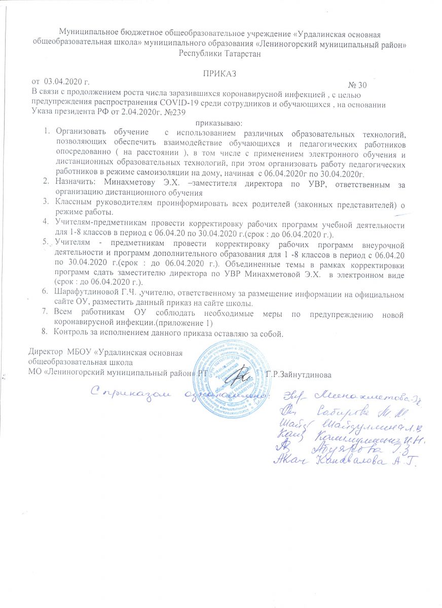 Приказ об организации дистанционного обучения от 03.04.2020