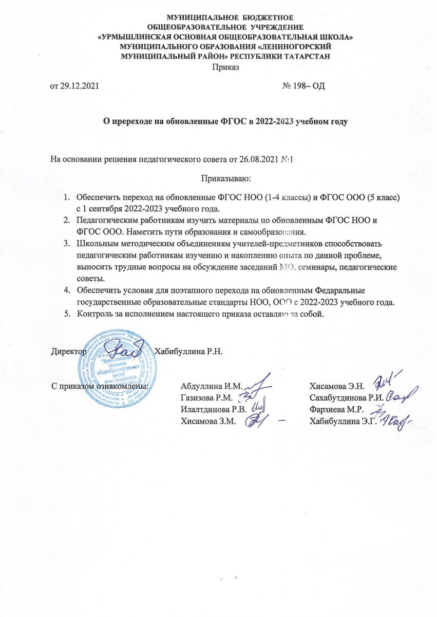 Приказ о переходе на обновленные ФГОС в 2022-23 уч.году