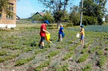 День был жаркий, солнечный. На пришкольном участке поливали грядки овощей и цветники.
