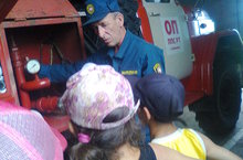 Сегодня в пришкольном лагере был день эвакуации. В рамках этой акции ребята совершили экскурсию в ОП с.Урмышла противопожарной службы (пожарная охрана).Были проведены практические занятия. Так же в рамках акции против табакокурения Гафиятуллин Р. (начальник ОП с.Урмышла) провел лекторий на тему «Возникновение пожара при курении»