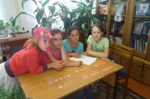 9июня в пришкольном лагере был проведен день посвященный Дню России. Дети выпустили информационные листки и был проведен конкурс рисунков "Россия- мой дом, моя жизнь". В сельской библиотеке библиотекарь Галиева Г. провела час патриотизма "Россия наша держава". Общий счет командной викторины 1: 0 в пользу "Солнышко"