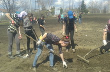Работаем дружно, соблюдая правила охраны труда 30.04.2015 На пришкольном участке кипит весенняя работа. Ребята вместе с учителями сажают свёклу, морковь, готовят грядки для других овощей.