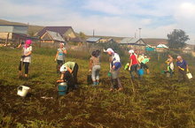 Бакчада көзге эшләр 11.09.2014 Бу елда да мәктәп бакчасында үстерелгән бәрәңге мул уңышы белән укучыларны һәм укытучылар коллективын сөендерде.