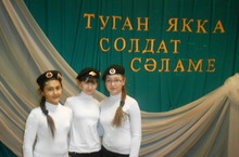 Бүген, кадерле егетләребезне, Ватанны саклаучылар көне белән мәктәбебез кызлары тантаналы рәвештә тәбрик итте. Исәнлек, укуларында, тормышларында зур уңышлар, озын гомер теләделәр алар. Шулай ук укучылар традицион "Туган якка солдат сәламе" кичәсендә дә катнаштылар. Солдат хатлары укыдылар, биеделәр, җырладылар.