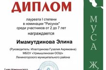 IV Республика патриотик "Кызыл ромашка" конкурсында Муса Җәлилнең "Кошларны каршы алабыз " шигыренә рәсем ясап Имамутдинова Элина I дәрәҗә дипломына лаек булды.