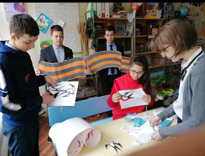 В преддверии 77-й годовщины Победы в Великой Отечественной войне окна нашей школы украсили изображениями вечного огня, красных гвоздик, белых голубей и другими символами праздника. Ученики и учителя вырезали из бумаги и картона аппликации и рисовали тематические рисунки. Затем использовали все это в оформлении окон и создали настроение праздника.Также проходят тематические классные часы, встречи с ветеранами, различные мероприятия, приуроченные ко Дню Победы.