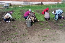 Хезмәт лагеры укучылары мәктәп бакчасында көч куя: су сибә, чүп утый,кишер, чөгендер сирәкли. Булдыралар, молодцы!