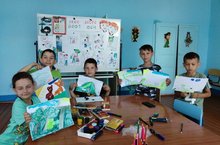 Первый день прошел насыщенно. Делали утреннюю зарядку, рисовали, провели День Пушкина.
