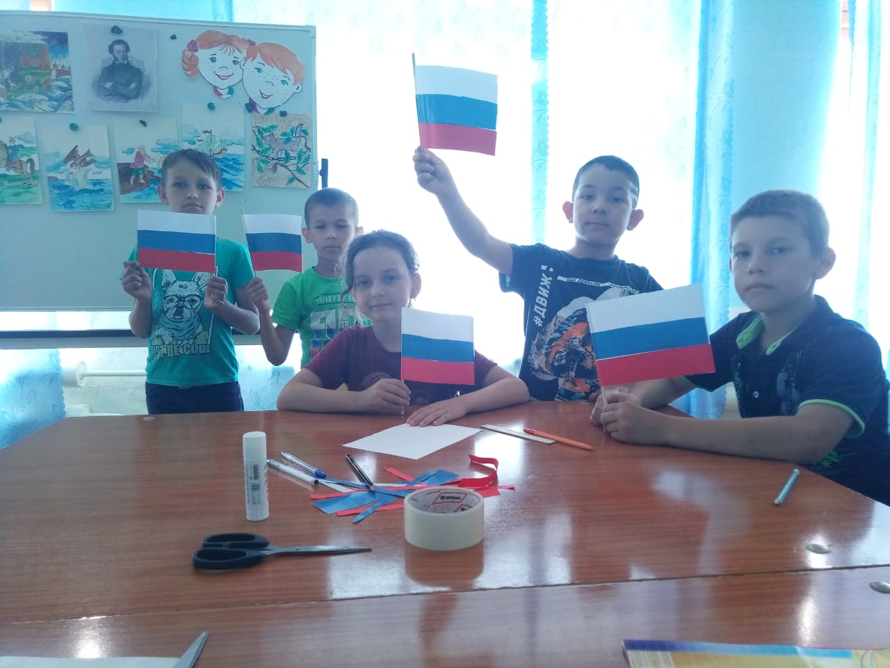 И в нашем лагере «Колокольчик» 11 июня прошли мероприятия, посвященные Дню России. Ребята провели дружеский турнир по футболу, посвящённый Дню России. Были организованы беседа «Символы России», игровая программа - «Россия – Родина моя». Дети углубили знания о символах нашего государства, о происхождении и истории российского герба и флага, о символическом значении цветов флага, о традициях родного края. Используя мультимедийную презентацию провели интеллектуальную игру «Россия -моё Отечество». Ребята с воодушевлением пели песни, читали стихи о Родине.фото