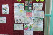 С целью формирования представлений у дошкольников о своём родном селе, воспитанию нравственно-патриотических чувств, любви к своей малой Родине был организован конкурс рисунков на тему «Село в котором я живу». Дети с большим интересом ждали итогов конкурса, внимательно изучали рисунки своих товарищей, делились мнением. Рисунки, дети выполнили с любовью к своему селу. В итоге мы оформили выставку рисунков на тему «Село в котором я живу» в фойе детского сада.