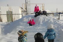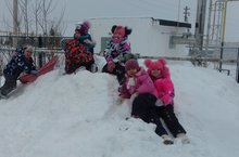 Сотрудники проводили раскидывание снега на территории детского сада. 14.04.2018