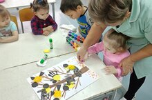 Праздник направлен на защиту пернатых, которые остаются зимовать в российских регионах: синиц, снегирей, щеглов, свиристелей и других. Наши детки вместе с младшим воспитателем Валиевой Г. Р. нарисовали с нетрадиционными элементами синичек.