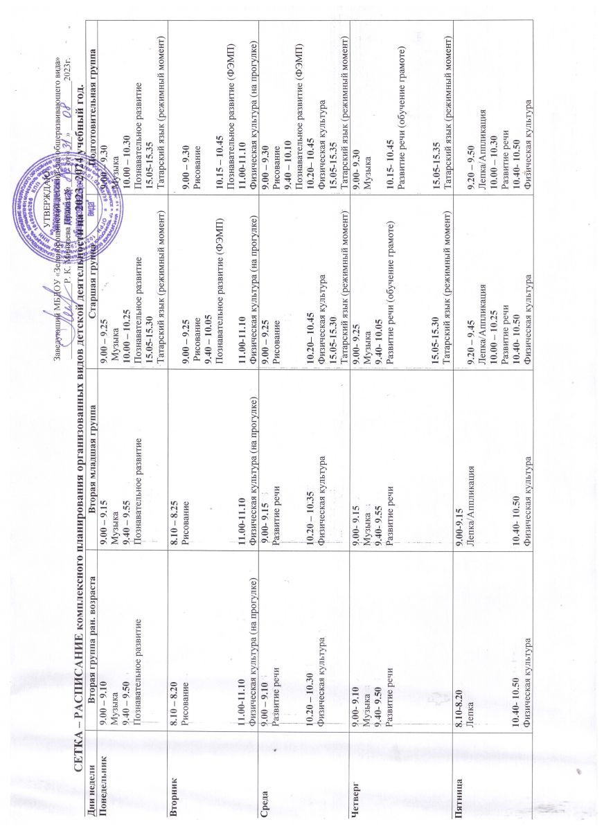 сетка-расписание организованной образовательной деятельности 2023-2024 учебный год
