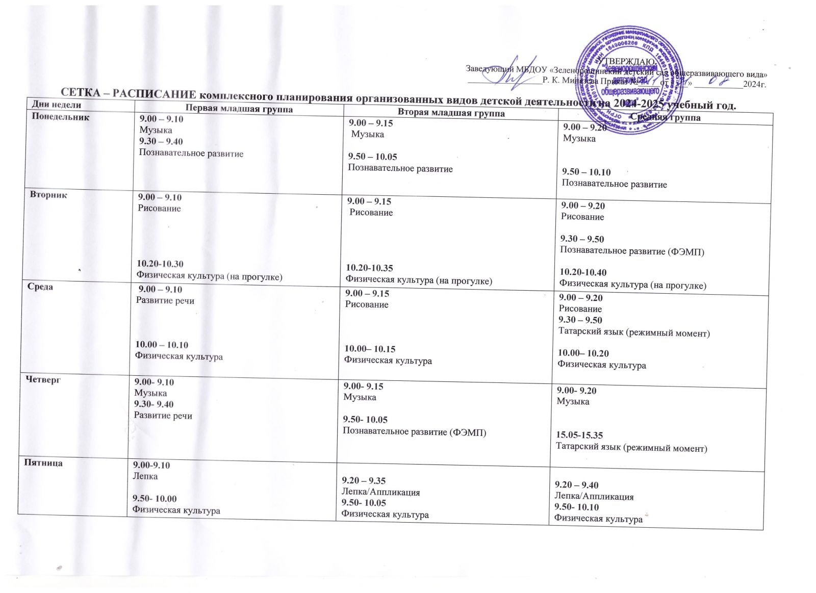 сетка-расписание организованной образовательной деятельности 2024-2025 учебный год