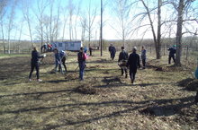 Вся школа вышла на экологический субботник по уборке территоии школы.