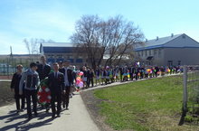Вся школа приняла участие в митинге. Учащиеся поздравили труженников тыла, возложили венки.