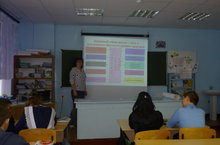В гостях у мобильного планетария г. Уфы. Были продемонстрированы фильмы по темам: 1-2 кл. - "Новогодние космические приключения"; 3-5 кл. - "Пророчество динозавров"; 6-11 кл. - "Пространство и время".