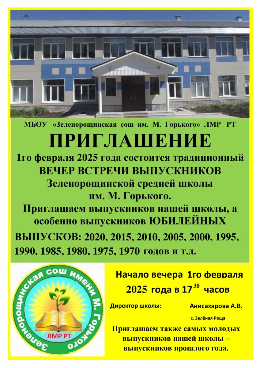 МБОУ «Зеленорощинская средняя общеобразовательная школа им. Горького» муниципального образования "Лениногорский муниципальный район" РТ - новости
