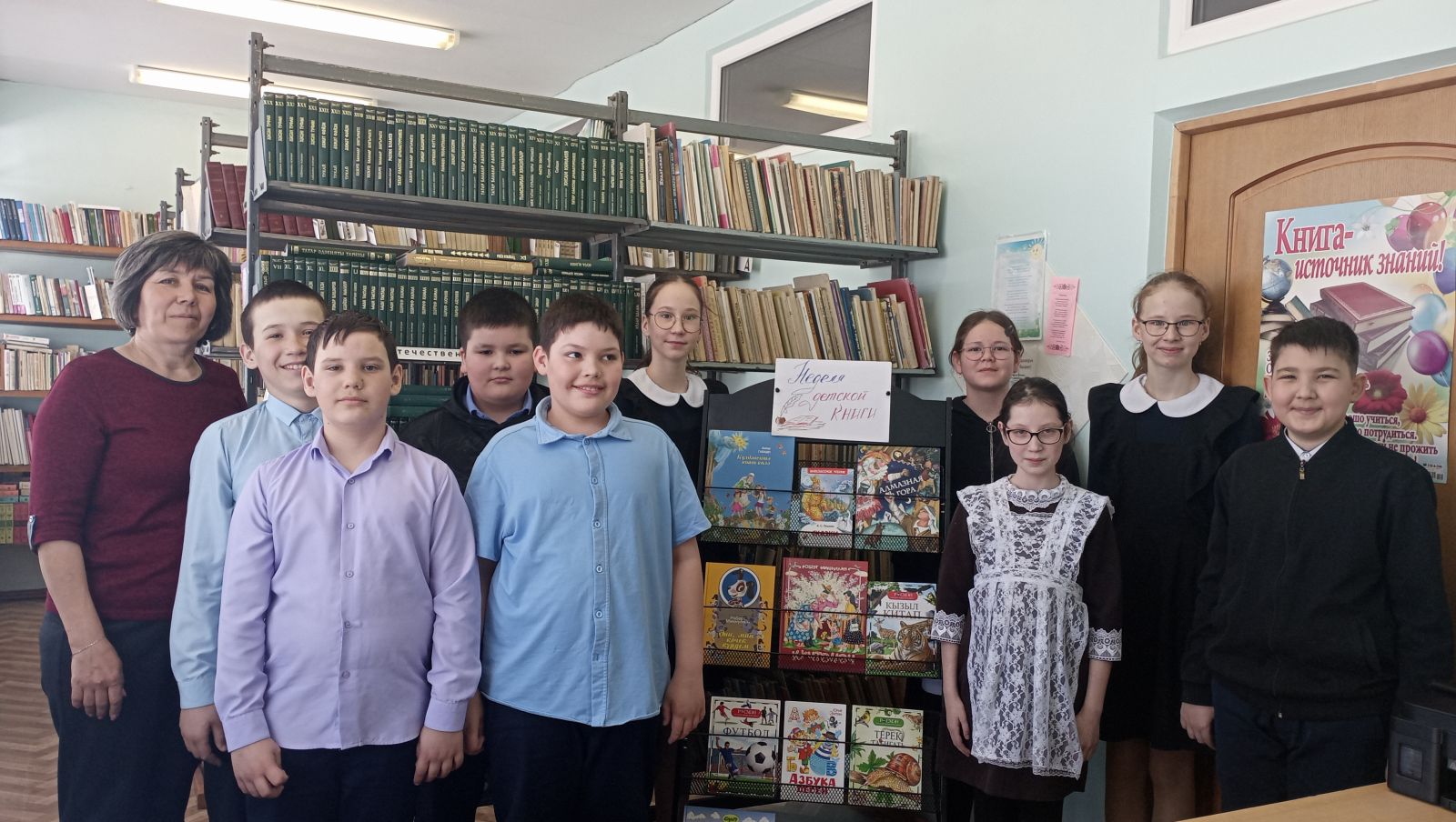 С 23 марта по 27 марта в школе проводится Неделя детской книги, посвященная Году единства народов России. В первый день недели библиотекарь школы Мугинова Г.З. и советник директора по воспитанию Фатхутдинова Н.Т. провели презентацию новых детских книг «С книгой мир добрей и ярче» .