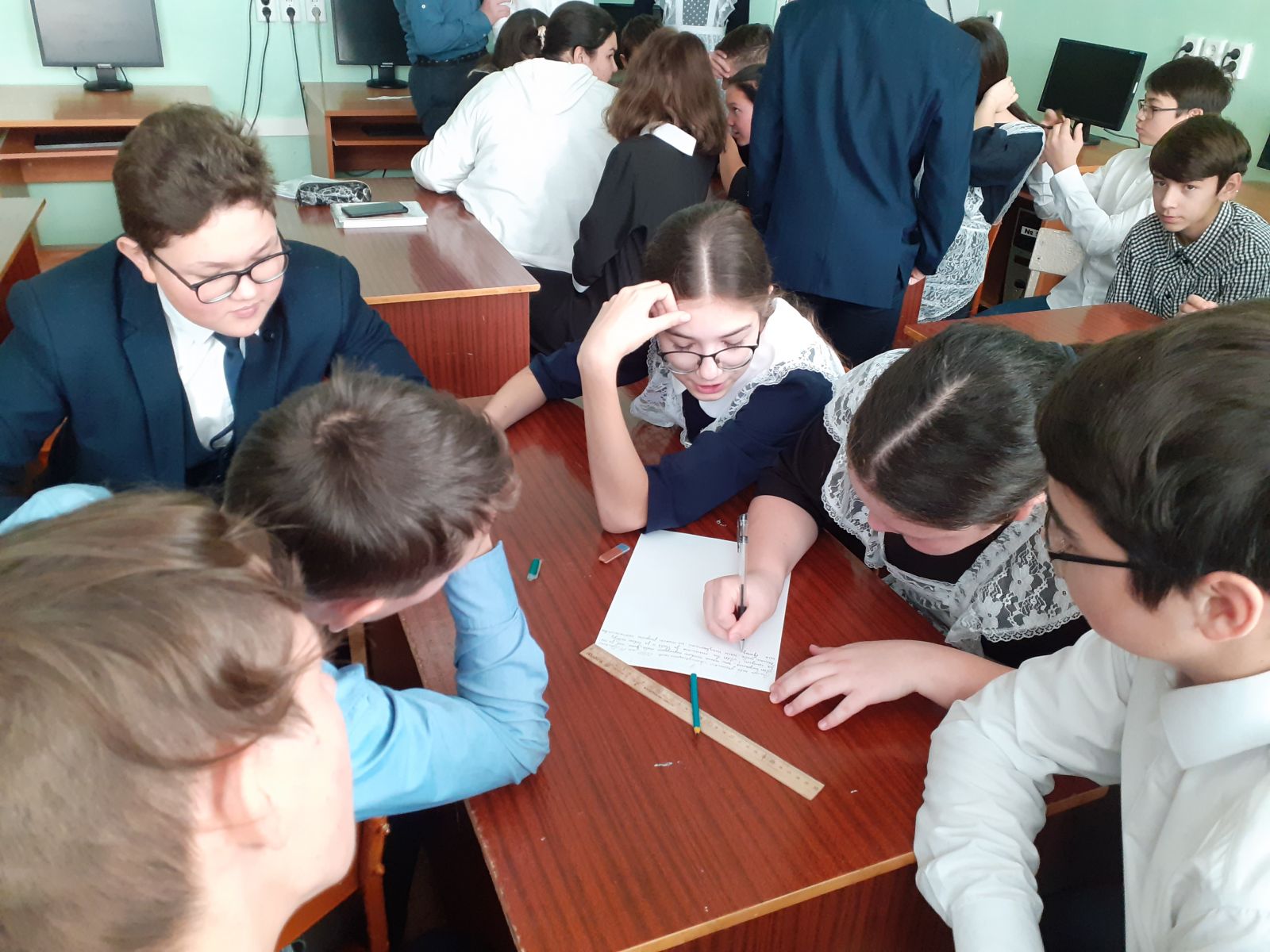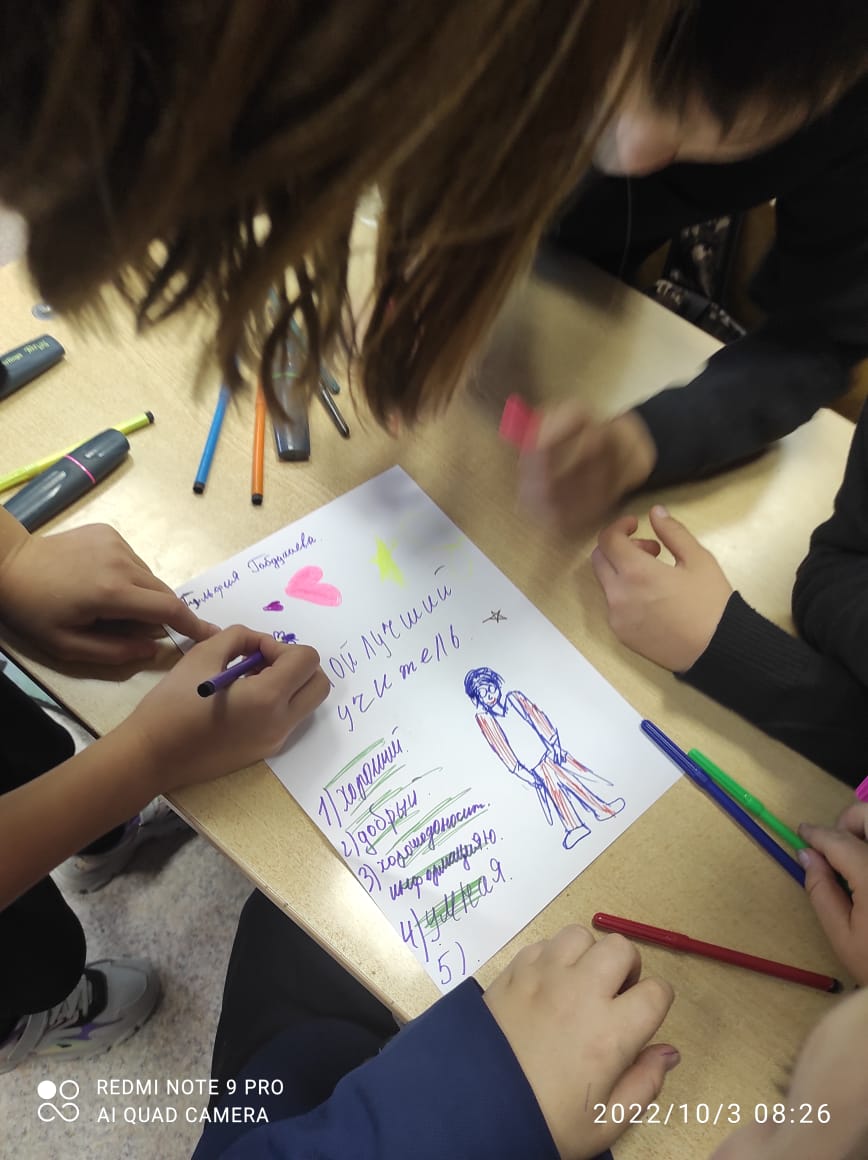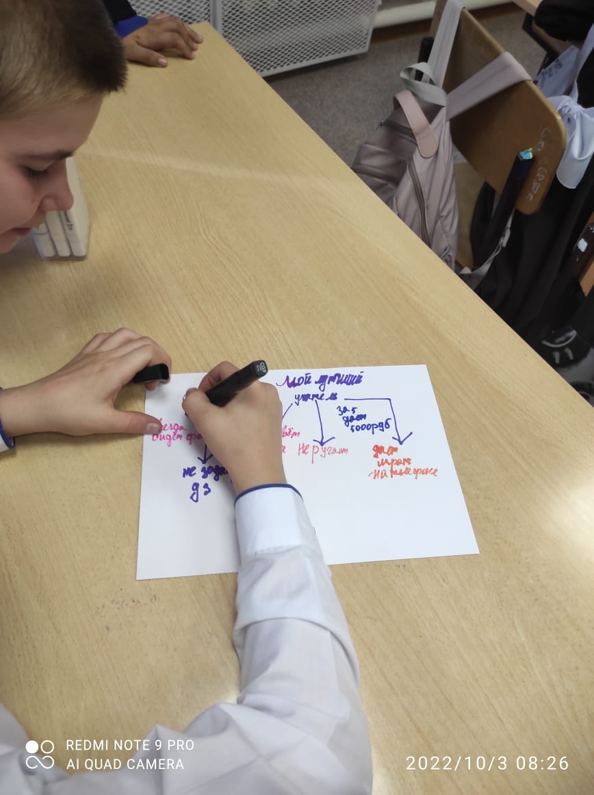 В рамках внеурочного занятия, посвящённого Дню учителя учащиеся 5-6 классов просмотрели видео про великих учителей, составили кластер "Мой лучший учитель", защитили свой кластер.
