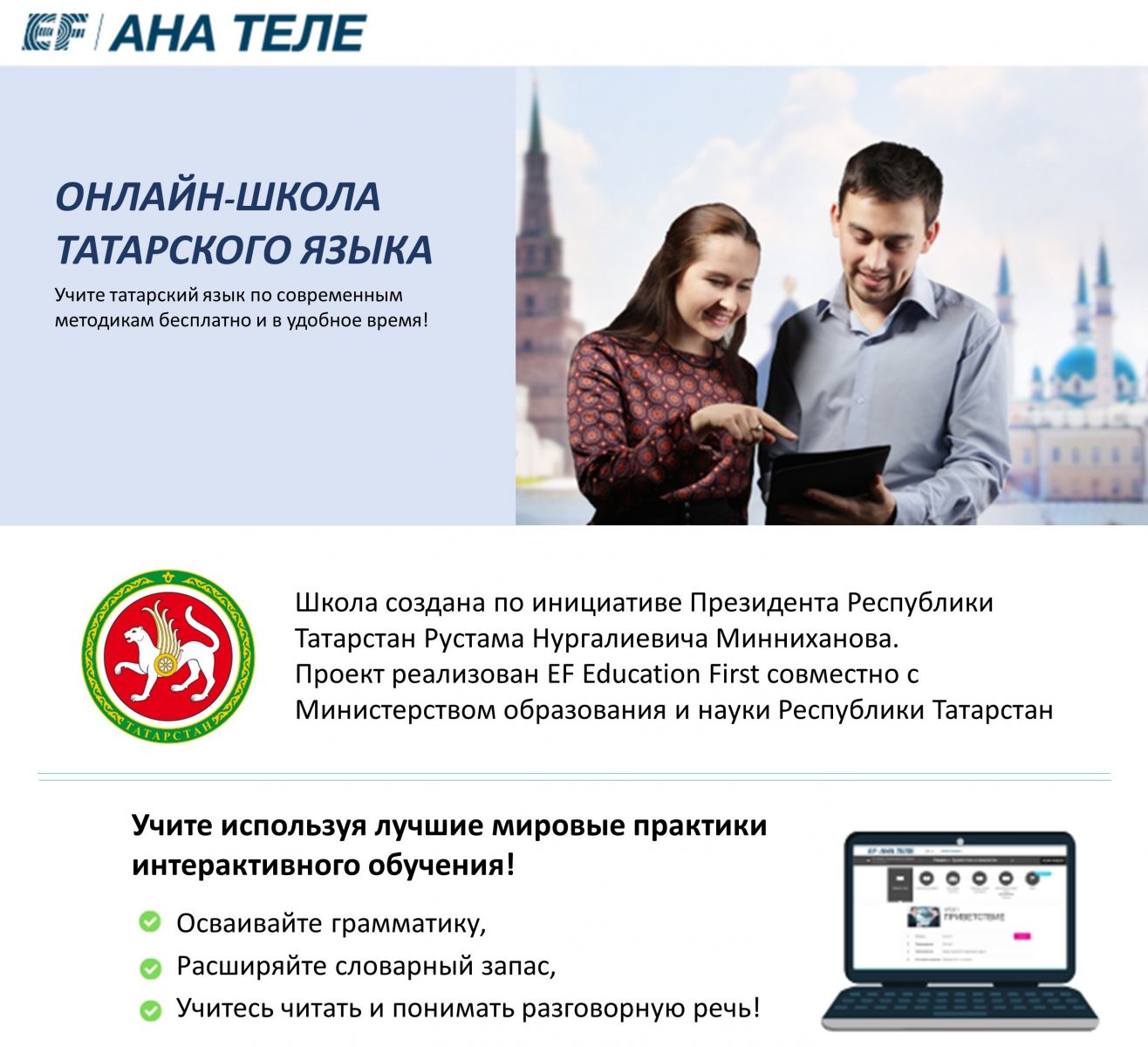 В целях сохранения и развития родных языков, культуры и традиций представителей народов, проживающих в Республике Татарстан, укрепления единства многонационального народа республики, Указом Президента Республики Татарстан Р.Н.Минниханова от 05.10.2020 №УП-653 2021 год объявлен Годом родных языков и народного единства. Одним из важных направлений государственной национальной политики является сохранение языкового многообразия, создание условий для изучения родных языков, в том числе с помощью интернет-технологий. В соответствии с поручением Президента Республики Татарстан Р.Н. Минниханова с 2013 года функционирует уникальный проект дистанционного обучения татарскому языку «Ана теле» (далее – проект «Ана теле»), который предоставляет возможность повышения уровня практического владения татарским языком как средством речевой коммуникации. Проект «Ана теле» нацелен на обучение татарскому языку всех желающих, проживающих как в Республике Татарстан, так и за рубежом. Обучение бесплатно и доступно на трех языках (английский, татарский, русский). Информация ЗДЕСЬ -