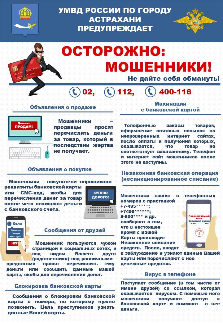 Сообщение по телефону о блокировке банковской карты – одна из излюбленных схем МОШЕННИКОВ. Они просят Вас дойти до ближайшего банкомата и перевести все свои средства на новый счет, чтобы не потерять деньги. Они уйдут к МОШЕННИКАМ!