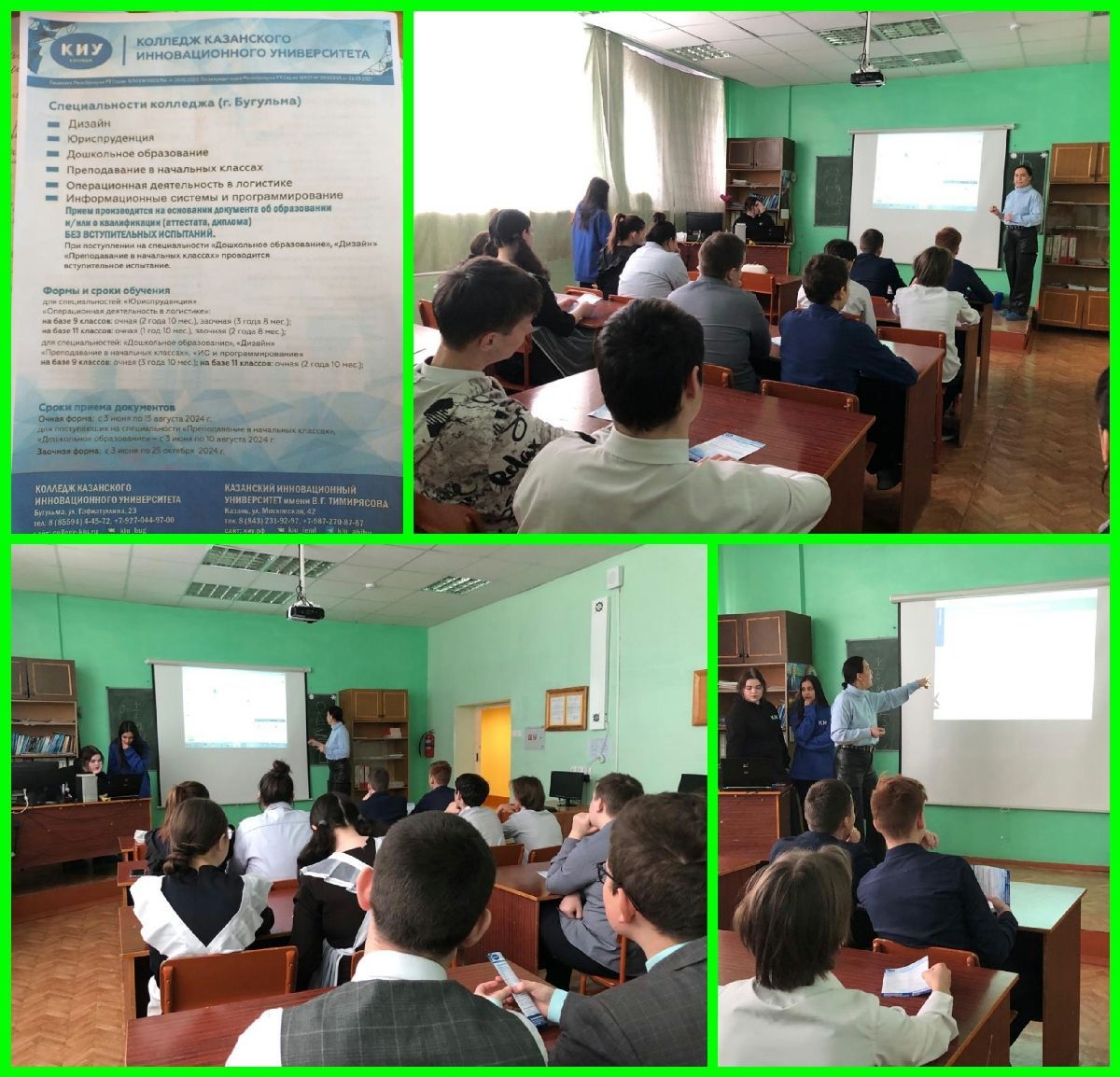 Опубликовано: 13.02.2024Встреча с представителями КИУ г Бугульма. Ознакомили учащихся со специальностями колледжа, условиями поступления сроком обучения.