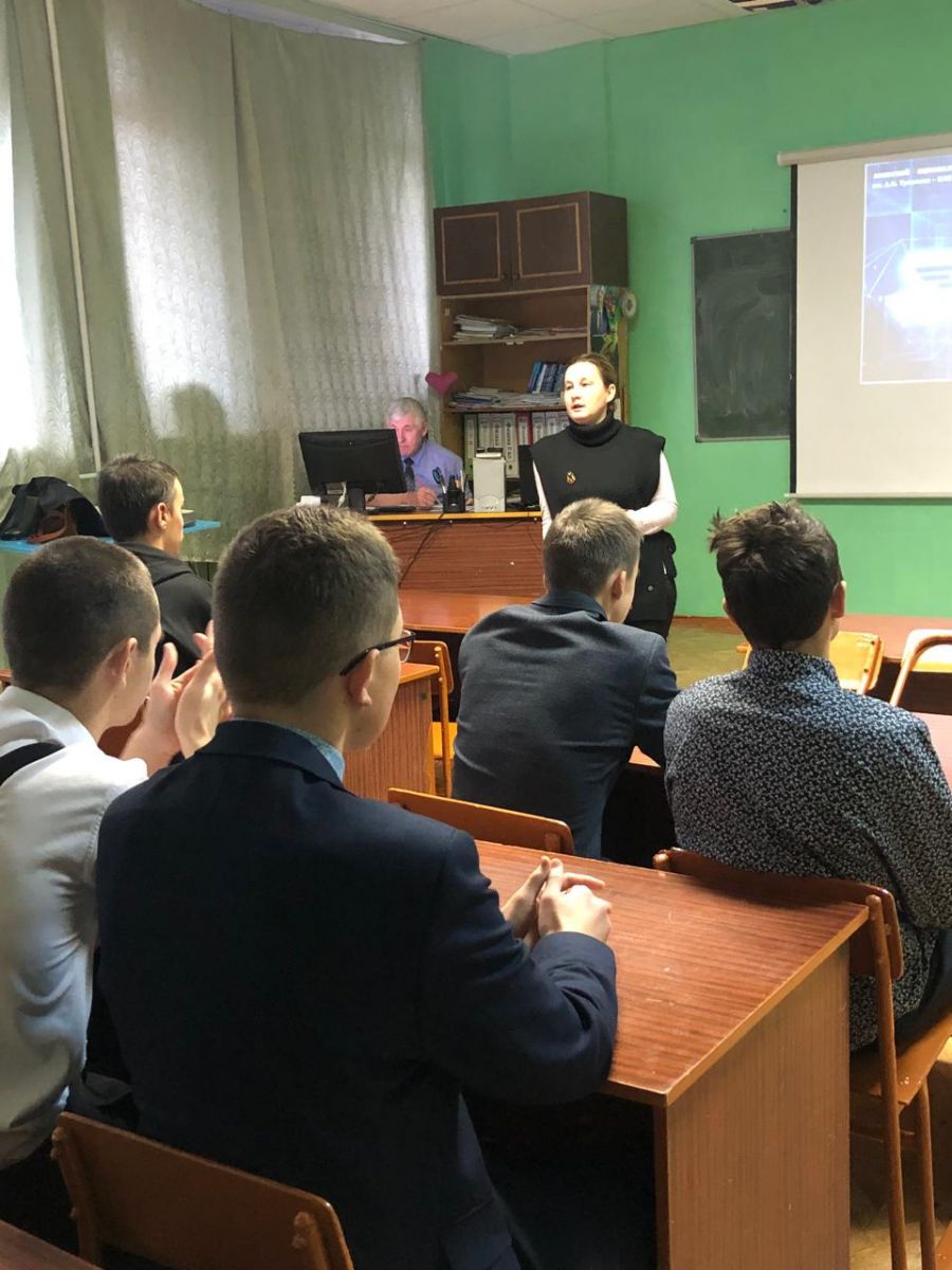 Опубликовано: 14.10.2024Сегодня в нашей школе состоялась встреча учащихся 10-11 классов с представителем ФГБОУ КНИТУ «КАИ» г Лениногорска Денисовой Наилей Фаргатовной. Ребята узнали об условиях приема и обучения в высшем учебном заведении, формах и сроках обучения, направлениях подготовки. Наиля Фаргатовна рассказала о студенческой жизни, преимуществах обучения в ЛФ КНИТУ-КАИ.
