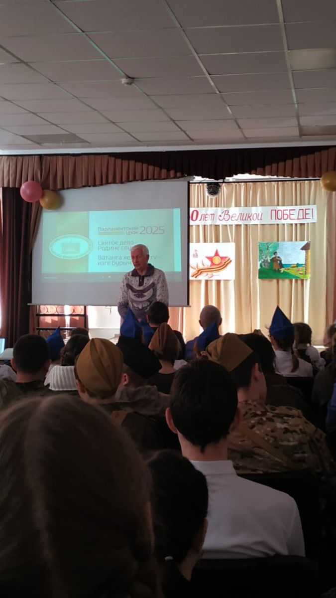 Общая тема Парламентского урока — 2025 — «Святое дело — Родине служить!». Учитель истории и обществознания Саиетгалиева Г.Г. совместно с депутатом Зеленорощинского сельского поселения избирательного округа №4 Пантюхиным Г.Ф., провели парламентский урок для учащихся 8-11 классов, в форме интерактива. В ходе занятия старшеклассники отвечали на вопросы о ключевых датах и событиях в истории страны, связанных с важнейшими моментами в жизни государства и общества.