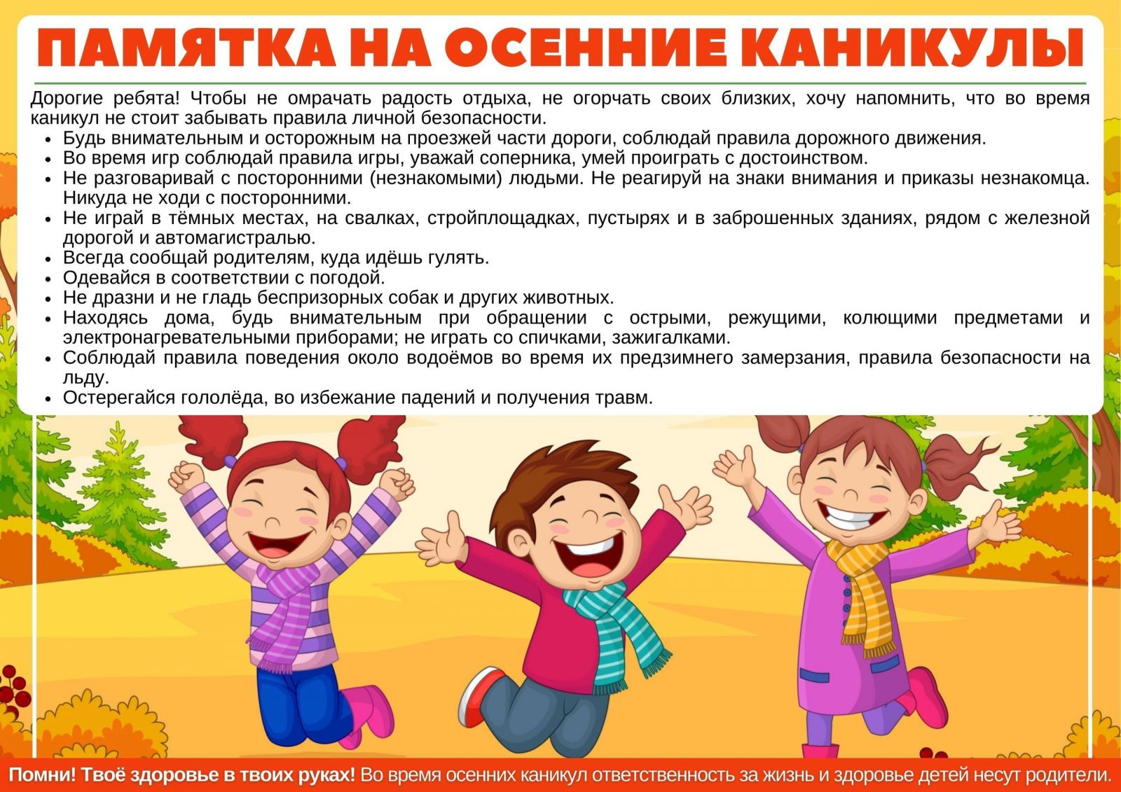 ✅ Не пребывать на водоёмах в период осенних каникул.