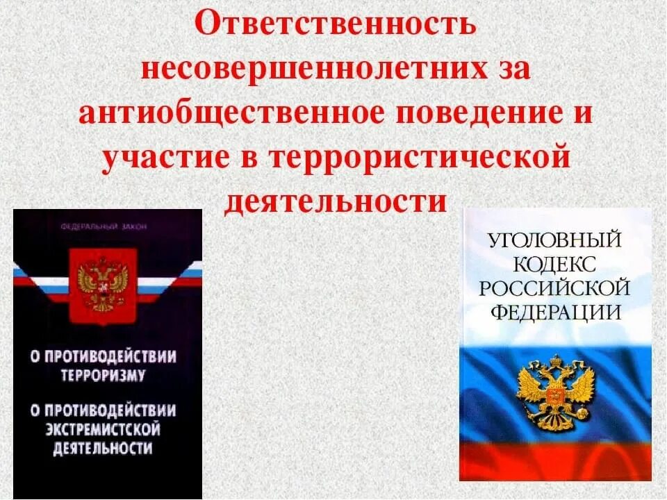 Несовершеннолетние при достижении установленного законом возраста за совершение преступлений экстремистского и террористического характера могут быть привлечены как к административной, так и к уголовной ответственности.