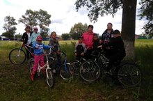 Прохладное субботнее утро нехотя позвало своих воспитанников в пришкольный лагерь. Однако солнце собрало всех на крылечке школы, заводной флешмоб всех разбудил и добавил заряда хорошего настроения. Вкусный запах столовой не оставил никого равнодушным. После утренней зарядки дети поспешили на этот зов в столовую. Каша придала всем бодрости и заряд на совершение нераельных поступков.Дети изучили презентацию,посвященную России: флаг, герб, гимн. После этого дети отправились совершать "героические" поступки- спортивные соревнования на велосипедах. "Самый быстрый ездок", "Кто быстрее", "Езда с препятствиями", "Знаток ПДД"- эти сложные задания нужно было выполнить ребятам на этих состязаниях. Все задания выполнены, дети все довольны. Победители награждены сладкими призами и подарками. Ура!