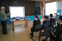 Сегодня прошел классный час, посвященный 25 летию Конституции Республики Татарстан, среди учащихся 5-9 лассов.Учитель истории Якупов Ф.М. обсуждал с учащимися разделы Конституции, рассказывал об истории ее создания, а также учащиеся 9 класса подготовили сообщения о правах и обязанностях человека.