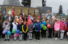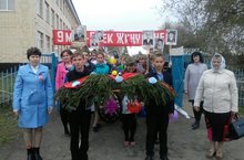 Укучылар һәм укытучылар коллективы Бөек Җиңү бәйрәменә багышланган чарага колоннага тезелеп, патриотик җырлар җырлап бардылар. Ә бәйрәмгә әзерлек эшләре күптән башланган иде: гирлянда –венок ясалган, шигырьләр ятланган... пилоткалар әзерләп куелган.