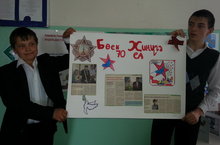 Сегодня учащиеся 4 класса были награждены грамотами за эффективную проектную деятельность "Хроника военных лет", посвященную 70 летию победы Великой отечественной войны. Учащиеся 4 класса вместе с куратором, учителем английского языка Вильдановой Г.Р.,искали информацию об определенных датах 1941-1945гг, читали книги в библиотеке, искали картинки военных дней, выбирали стихотворения для работы и т.д. В результате мы получили интересную папку под названием "Хроника военных лет", целью которой было патриотическое воспитание учащихся и формирвание чувтва гордости за победу наших ветеранов.