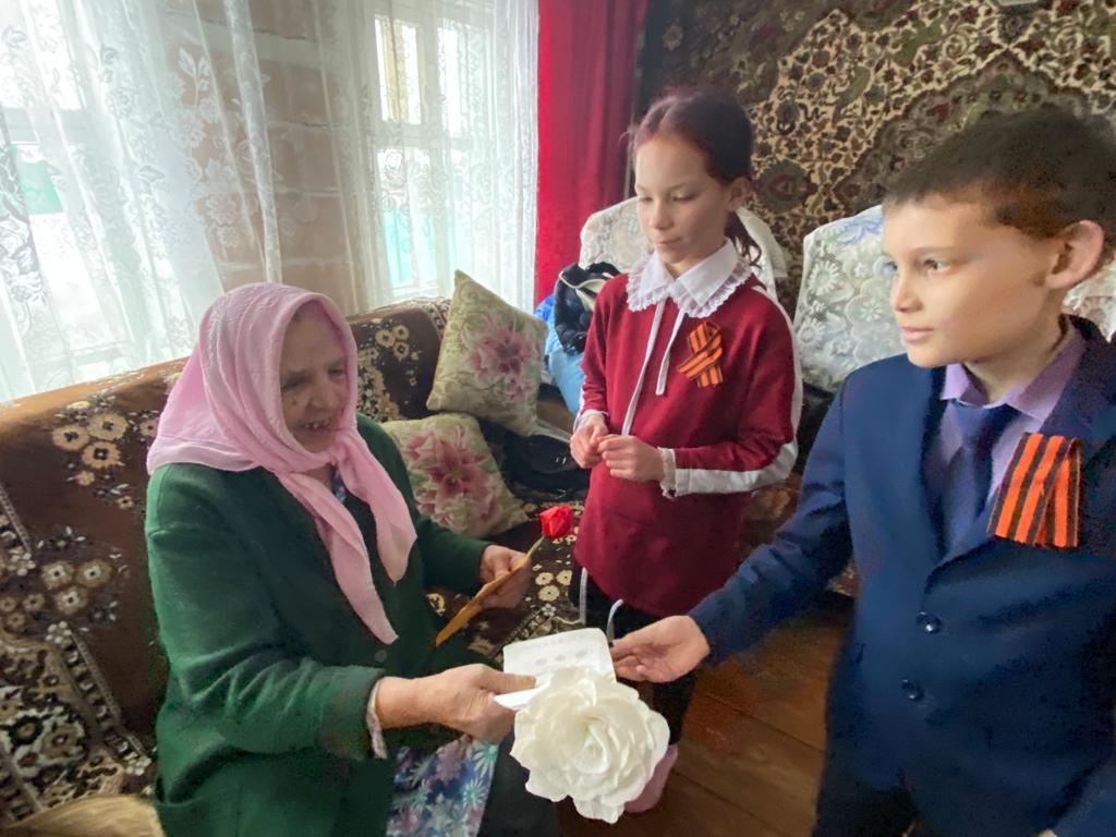 В целях военно- патриотического воспитания детей ученики 5 класса с классным руководителем , посетили учителя- ветерана нашей школы Ахметшину Халиду апу. Сын Ахметшин Мухтар Камилович служил в Афганистане.Он выполнил свой интернациональный долг перед Родиной,вернулся в родное село, создал семью, вырастил сына и дочь. К сожалению в прошлом году он покинул нас. Но приезжают к бабушке внуки и сноха. Халида апа радостно встретила и нас , беседовала с детьми. Ребята вручили открытки , цветы, сделанные своими руками. -