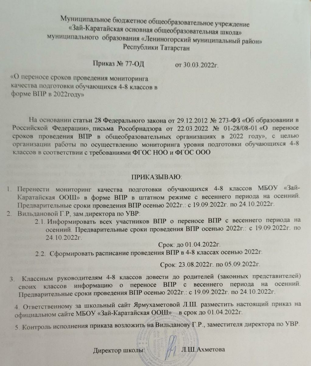 1.Приказ о проведении ВПР в 2021-2022 учебном году