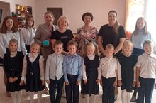 Сегодня в этот прекрасный сентябрьский денёк учащиеся 1 класса под шевством девочек восьмого класса сходили в родной детский садик "Солнышко", и поздравили свои воспитателейс грядущим праздником работников дошкольного образования