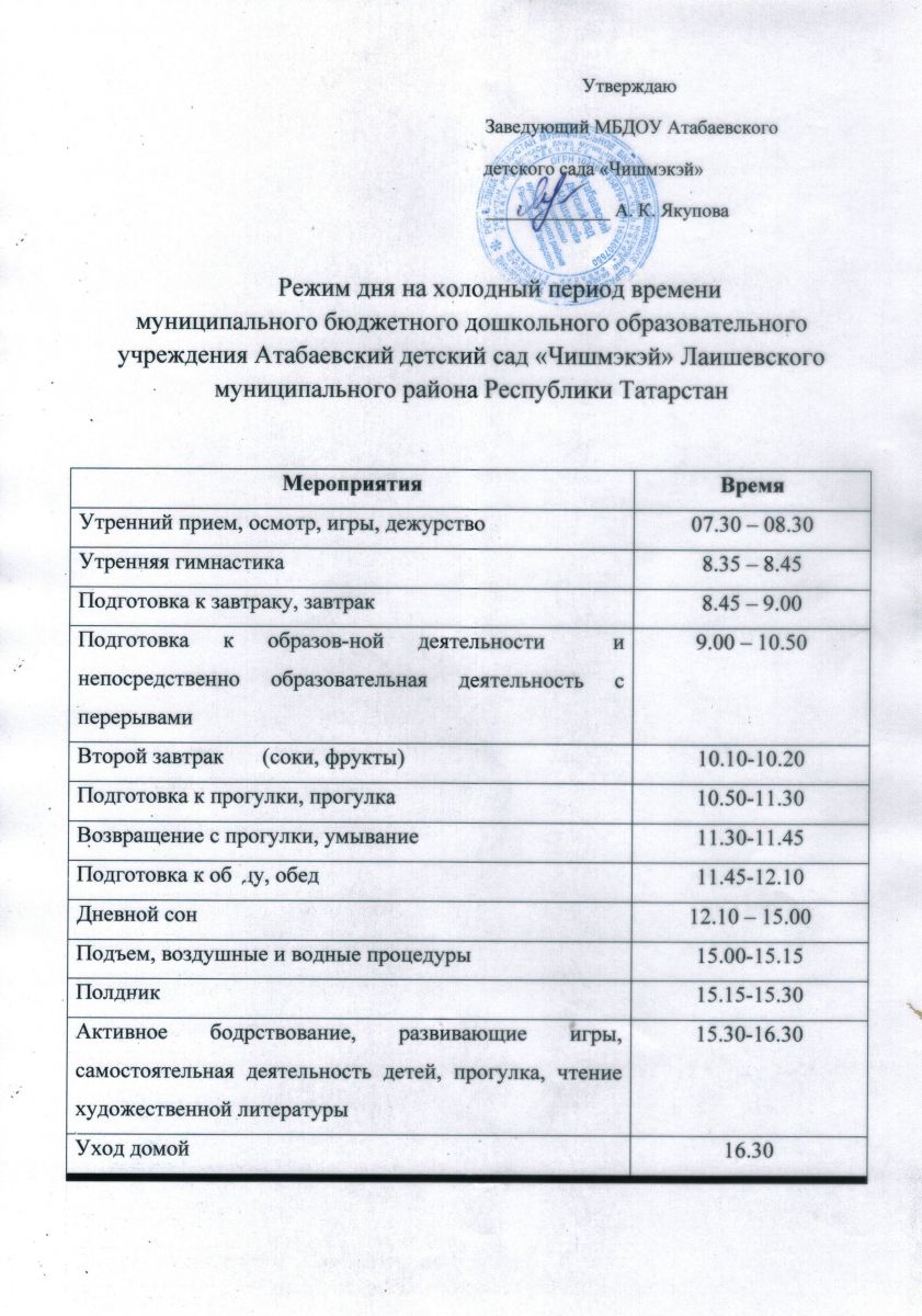 режим дня в холодный период на 2023-2024 учебный год