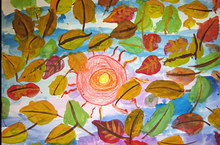 Ныне осень, непогода... Дождь и слякоть. Все грустят.Потому что с жарким летом расставаться не хотят.Небо плачет, солнце прячет, ветер жалобно поёт.Загадали мы желанье: пусть к нам лето вновь придёт. -