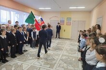 По традиции утро понедельника в МБОУ "Большекабанская СОШ имени академика В. И. Андреева" началось в выноса государственных флагов Российской Федерации и Республики Татарстан и исполнения гимнов.