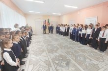 Начало учебной недели по традиции началось с торжественной линейки с выносом флагов Российской Федерации и Республики Татарстан, исполнения Государственных гимнов. После чего обучающиеся отправились по кабинетам на классные часы "Разговоры о важном", тема которого- "День российской науки".
