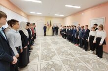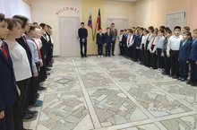 Начало учебной недели по традиции началось с выноса Государственного Флага РФ и РТ. Руководил церемнонией директор школы Кореев Павел Владимирович.