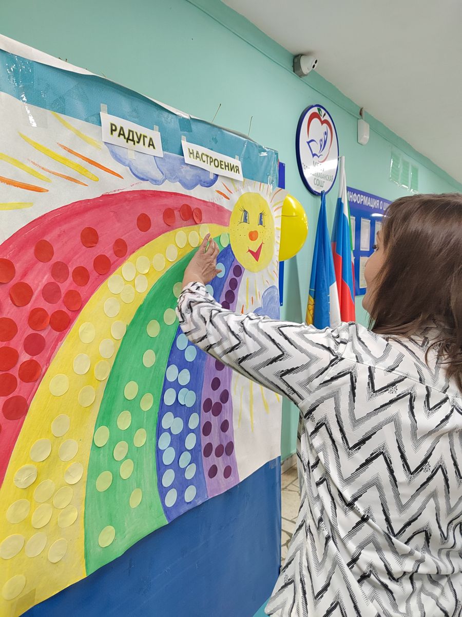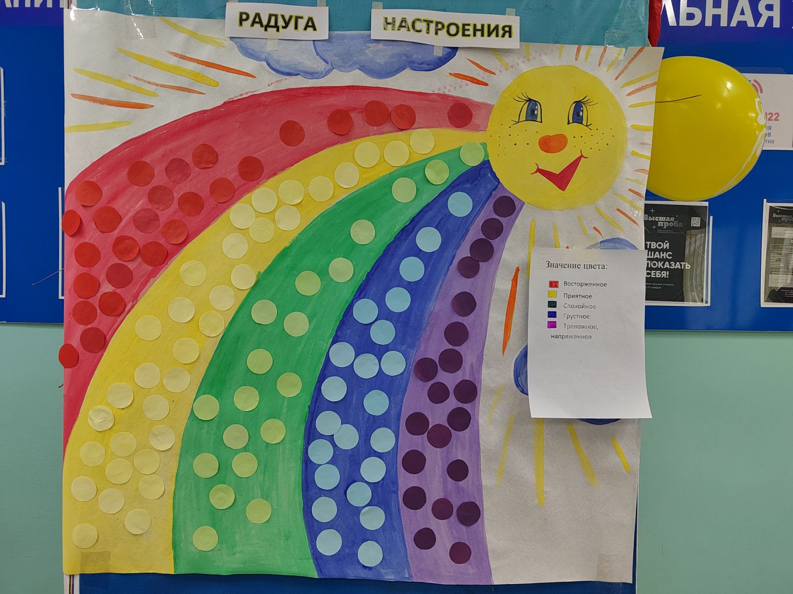 20 октября прошла акция «Радуга настроения». И обучающиеся, и педагоги очень активно, с интересом приняли участие. Всем детям и взрослым нужно было оценить при помощи цветных кружочков, с каким настроением они пришли в школу.