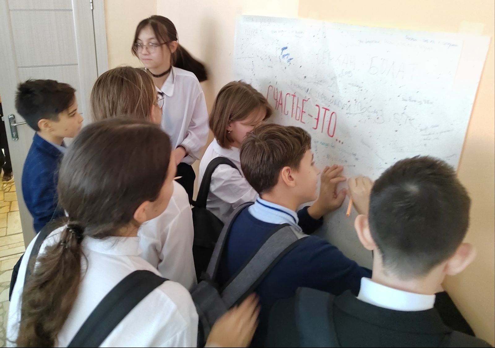 22 октября провели упражнение "Счастье-это", где учащимся было предложено записать на плакате свое представление о счастье.