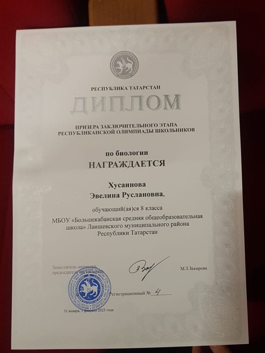 Поздравляем Хусаинову Эвелину-призера Республиканской олимпиады школьников