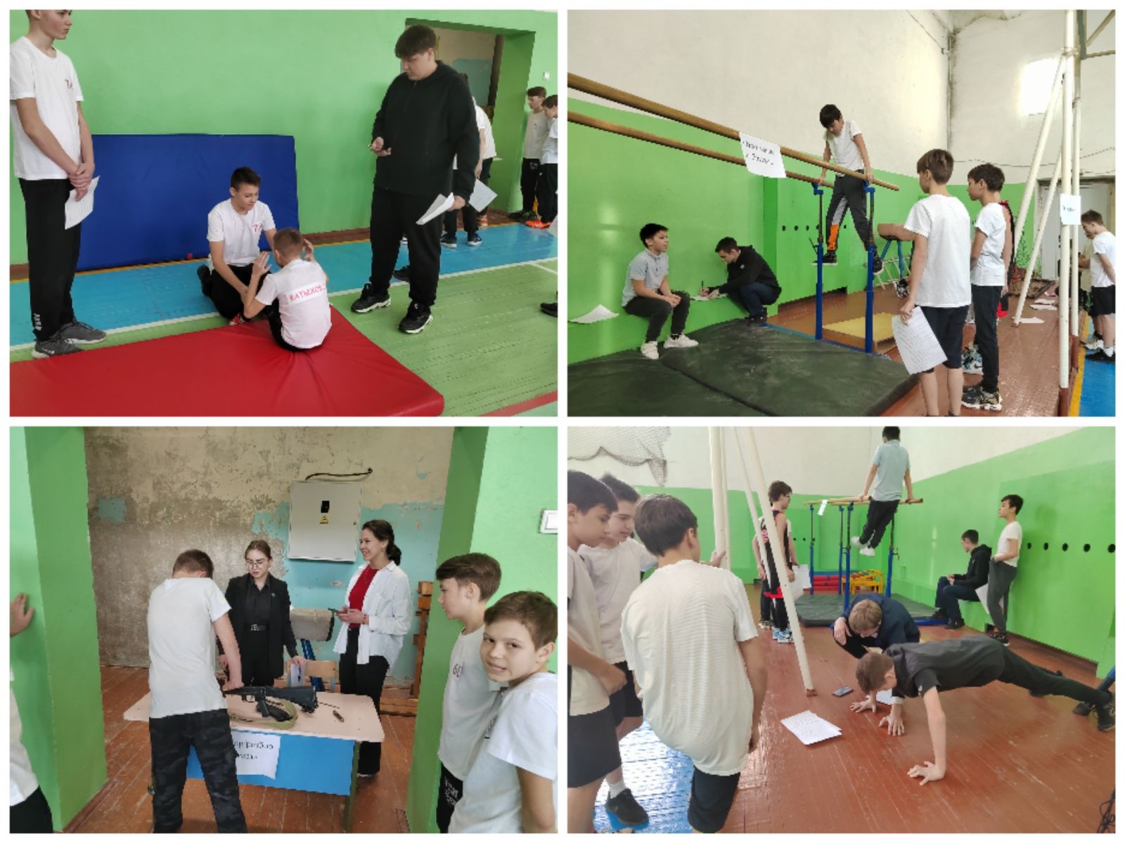 Опубликовано: 22.02.2023Мальчишки с интересом выполняли все задания: отжимались, разбиралт автомат, надевали противогаз, подтягивались и т.д.