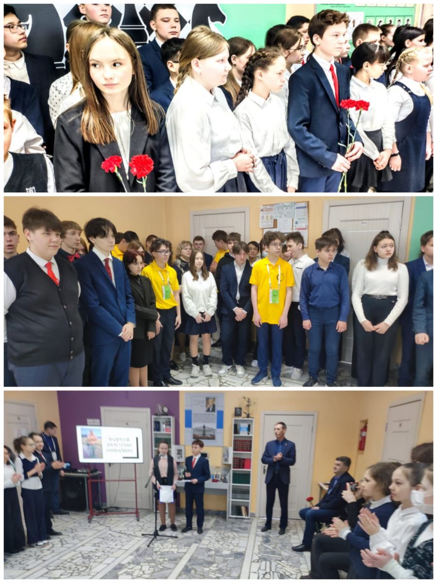 Обучающиеся школы возложили цветы к портрету академика в музейной экспозиции школы.