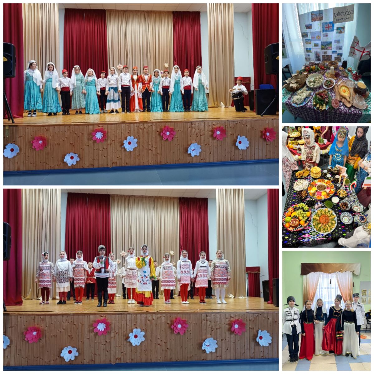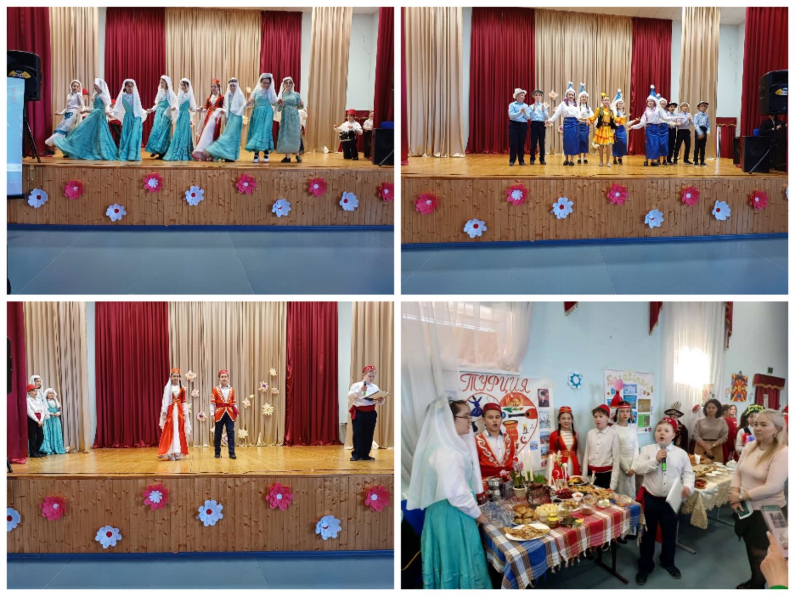 Опубликовано: 21.03.2024Мероприятие началось с шествия представителей от каждой страны- участника. Затем каждый класс презентовал свой праздничный стол с национальными блюдами. К этому конкурсу все отнеслись очень творчески, проявили фантазию и эстетический вкус. Членам жюри было очень трудно оценивать: столы ломились от вкусной национальной еды. Чего только не было! Даже был сумаляк- традиционное весеннее блюдо из проросших зерен пшеницы – символ празднования Навруза.