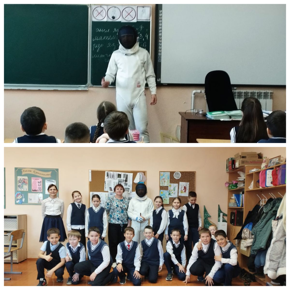 Опубликовано: 20.03.2025Он 4 года занимается интересным видом спорта- фехтованием. Мухамадали не раз участвовал в соревнованиях по этому виду спорта в г.Набережные Челны, занимал призовые места, имеет спортивный разряд.Он рассказал и показал детям снаряжения и приемы.Детям было очень интересно!
